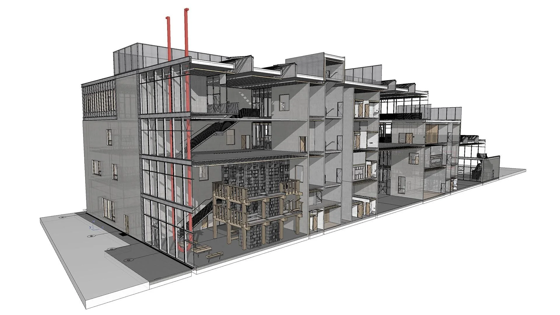 “Vi vandt konkurrencen om NEW AARCH i samarbejde med tegnestuen Vargo Nielsen Palle. Vi har sammen udarbejdet skitse- og konkurrenceprojekt, hvorefter vi fortsatte projekteringen i Archicad. Idéen var at lave et meget ærligt byggeri, hvor de studerende kan se, hvordan en bygning er sat sammen med synlige materialer og installationer. Der er i princippet ikke nogen malerentreprise i projektet, heller ingen spartling. Arkitektskolen Aarhus er tænkt som et levende værksted til fordybelse for de studerende og en meget ærlig og robust bygning, som kan tåle lidt af hvert,” fortæller Jens. “På den måde bliver arkitektur meget håndgribeligt. Det er ikke helt problemfrit at koble en uddannelsesinstitution og et værksted, hvor mange krav skal opfyldes. Men det er lykkedes i et godt samarbejde med en meget dygtig entreprenør.”